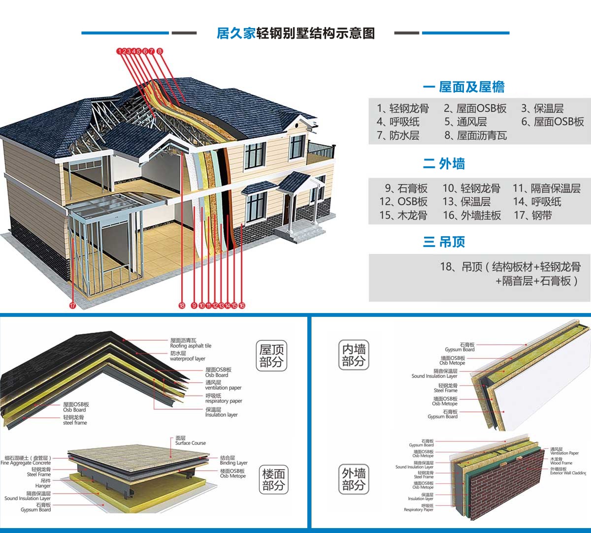 居久家輕鋼別墅隸屬于四川萬(wàn)建城建筑工程有限公司,集科研、設(shè)計(jì)、咨詢(xún)、加工、生產(chǎn)安裝為一體。一直致力于新型輕鋼結(jié)構(gòu)房屋的研究、開(kāi)發(fā)和應(yīng)用,倡導(dǎo)房屋建筑的設(shè)計(jì)和應(yīng)用在標(biāo)準(zhǔn)化、模塊化、通用化、規(guī)模化生產(chǎn)的同時(shí),實(shí)現(xiàn)人居環(huán)境的個(gè)性化、人性化、以及健康和舒適。 公司目前引進(jìn)具有國(guó)內(nèi)先進(jìn)水平輕鋼結(jié)構(gòu)房屋建筑技術(shù)和生產(chǎn)線(xiàn),標(biāo)準(zhǔn)化、精細(xì)化和定制化設(shè)計(jì)、制造、安裝輕鋼結(jié)構(gòu)房屋。不僅能夠提供風(fēng)格各異的別墅建筑,同樣能夠提供行業(yè)標(biāo)準(zhǔn)的輕鋼樓宇建筑及建筑群。居久家裝配式房屋技術(shù)體系是高效節(jié)能型綠色建筑體系,各項(xiàng)建筑物理性能卓越,處于業(yè)內(nèi)先進(jìn)水平,能夠?yàn)榭蛻?hù)提供全程模塊化綠色建筑集成解決方案。