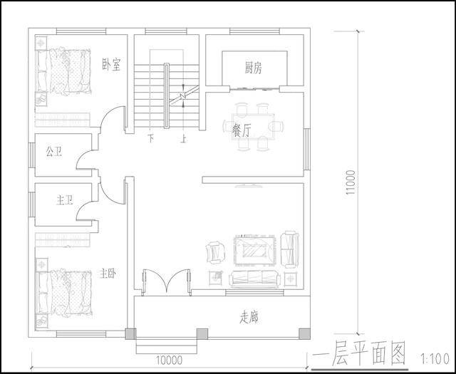 一層布局主次臥兩間臥室,單獨(dú)的飯廳,寬敞的客廳,入戶設(shè)計(jì)一條走廊,是整棟綿陽輕鋼別墅的亮點(diǎn)所在。