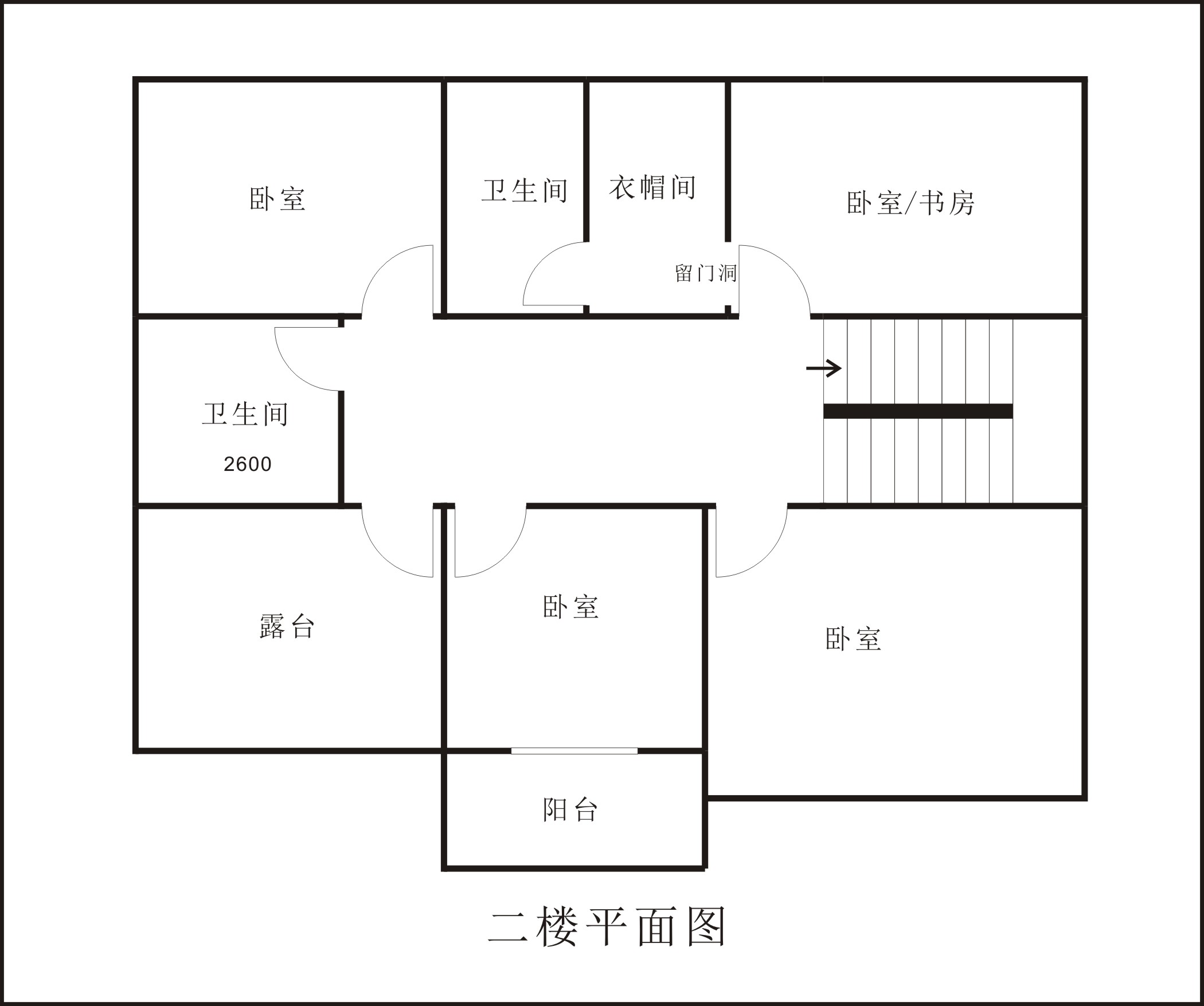 二樓設(shè)計(jì)三室兩衛(wèi),次臥陽(yáng)臺(tái)采用開放式設(shè)計(jì),使得家人每天都能享受到從清晨到日暮的每一縷和煦陽(yáng)光。
