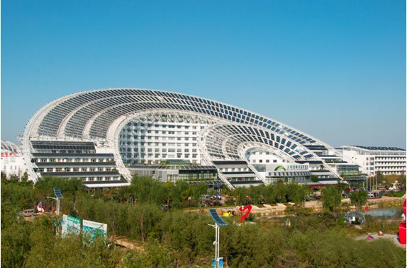 它號(hào)稱世界上最大的太陽(yáng)能建筑,日月壇微排大廈總建筑面積達(dá)到7.5萬平方米,在全球首創(chuàng)實(shí)現(xiàn)了太陽(yáng)能熱水供應(yīng)、采暖、制冷、光伏并網(wǎng)發(fā)電等技術(shù)與建筑的完美結(jié)合,建筑整體節(jié)能效率達(dá)88%,每年可節(jié)約標(biāo)準(zhǔn)煤2640噸、節(jié)電660萬度,減少污染物排放8672.4噸,是全球首創(chuàng)性地實(shí)現(xiàn)了太陽(yáng)能熱水供應(yīng)、采暖、制冷、光伏并網(wǎng)發(fā)電等技術(shù)與建筑的完美結(jié)合。