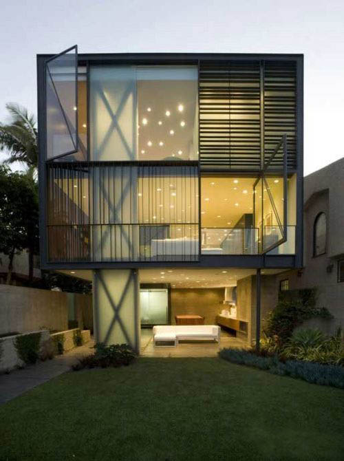出自于伊朗建筑師格倫的作品,位于加州洛杉磯威尼斯運(yùn)河。挑戰(zhàn)的項(xiàng)目是為了戶外空間最大化,創(chuàng)造一個(gè)似乎倒著盤懸在地面上的。