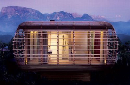 這個(gè)房子是非常有趣的和可持續(xù)建筑項(xiàng)目,被建立在意大利的博岑附近,海拔1200M。它的設(shè)計(jì)方案根本在于綠色環(huán)保,低耗能。Fincube房屋面積47萬平米,類似是一間小公寓的生存空間。它的內(nèi)部設(shè)計(jì)是很小的,但它卻有一切城市生活提供。