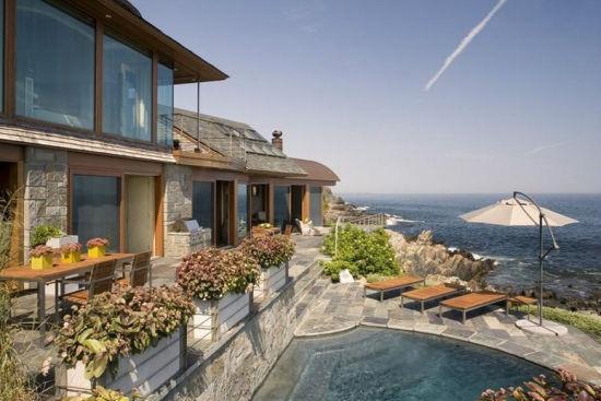 豪宅位于位于美國緬因州,大落地窗,全方位欣賞海景。別墅是由由木頭、銅、石頭、玻璃和鋼打造而成。別墅室內(nèi)面積僅372平方米,包括4間臥室,4個(gè)全浴和1個(gè)半浴,是一座現(xiàn)代化英格蘭風(fēng)格的住宅。