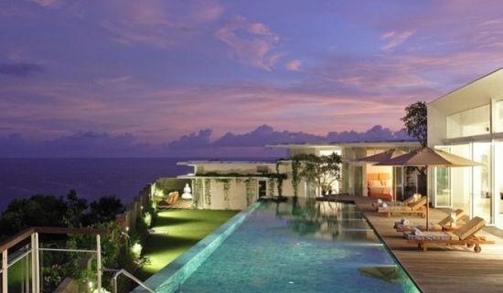 別墅位于印度尼西亞布基德半島(Bukit Peninsula)懸崖的頂端,帶露天浴缸和無邊界泳池。每座亭狀建筑內(nèi)都裝飾有巴厘風(fēng)格的雕像、亞洲的古董和藝術(shù)品。
