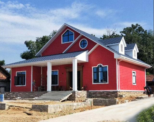 第三款,這款一層四川輕鋼別墅,面積稍大,帶二層閣樓,加上屋頂透氣窗的設(shè)計,顯得歐美風(fēng)格十足。這樣一棟別墅在鄉(xiāng)下想不成為焦點都難。