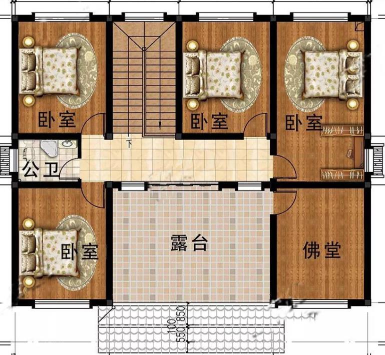 這個(gè)四川輕鋼別墅的二樓,不僅設(shè)計(jì)了四個(gè)臥室,還特意留有一個(gè)佛堂,也可以作為其他功能區(qū)域使用,更值得一提的是建筑的中間位置有一個(gè)大露臺(tái),及隱私,有采光好,可以晾曬衣服和休閑。