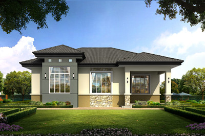 這款單層別墅的設(shè)計(jì)相對(duì)獨(dú)特,正房屋頂搭配兩個(gè)小屋頂,給人層次分明的感覺,讓原本單調(diào)的屋頂顯得非常的帶有設(shè)計(jì)感,雙色的外墻顏色搭配,加上小格子窗戶,是整個(gè)建筑給人一種簡(jiǎn)約而不簡(jiǎn)單的感覺。