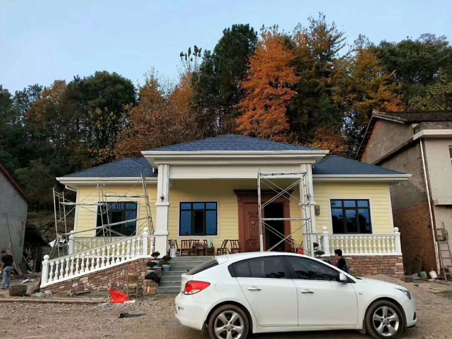 第二套要推薦的是一棟典型的美式風(fēng)格的別墅,雖然只是一層,但是氣勢完全不輸兩層的房屋,左右對稱,布局工整,適合喜歡有堂屋的朋友選擇,外觀顏色為米黃色,給人樸實(shí)中帶著大氣的感受,左右兩邊對稱凸出的窗戶是整個(gè)房子的設(shè)計(jì)亮點(diǎn),使整棟廣元輕鋼別墅的外觀顯得不平庸。