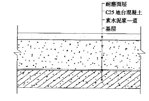 地面的基本構(gòu)造一般自下而上,分為:底板混凝土-素水泥漿一道-地臺(tái)混泥土-3mm 厚耐磨材料層(其基本結(jié)構(gòu)示意如圖1)