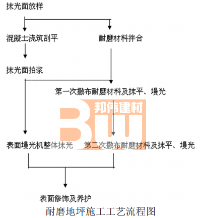 6.4 第二次撒布耐磨材料及抹平、墁光。