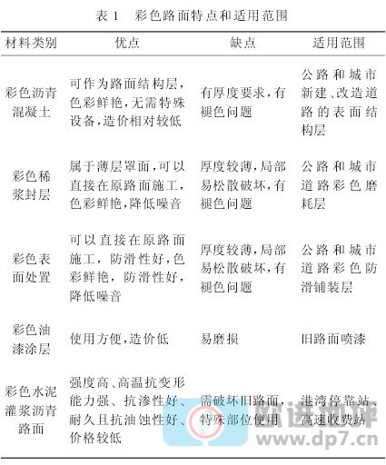 1彩色路面分類、特點(diǎn)及適用范圍1.1彩色路面分類