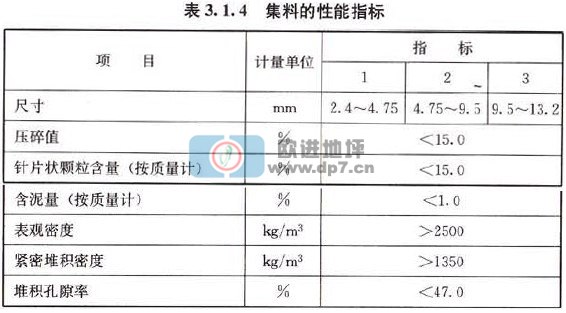 3. 1.4透水水泥混凝土采用的集料,必須使用質(zhì)地堅硬、耐久、潔凈、密實的碎石料,碎石的性能指標(biāo)應(yīng)符合現(xiàn)行國家標(biāo)準(zhǔn)《建筑用卵石、碎石》GB/T 14685中的二級要求,并應(yīng)符合表3.1.4規(guī)定。