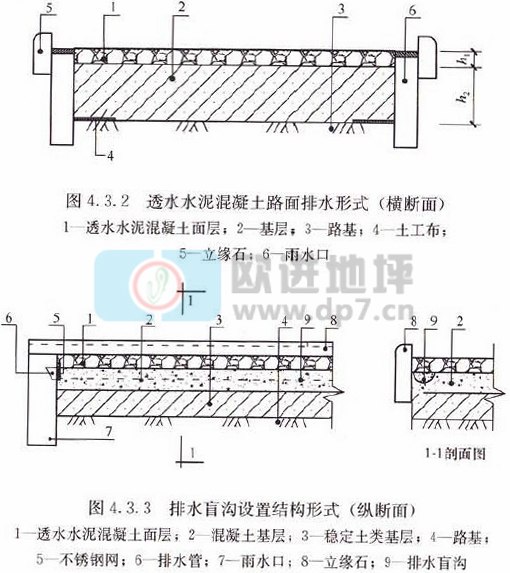 4.3.1透水水泥混凝土路面的排水設(shè)計(jì)宜符合現(xiàn)行行業(yè)標(biāo)準(zhǔn)《城市道路設(shè)計(jì)規(guī)范》CJJ37的有關(guān)規(guī)定。