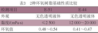 由于環(huán)氧樹脂分子量的不同,分為固體環(huán)氧樹脂和液體環(huán)氧樹脂兩種,根據(jù)無(wú)溶劑環(huán)氧自流平地坪涂料的要求:為了獲得良好的流平性,便于施工,所以應(yīng)選用低分子量的液體環(huán)氧樹脂[6-12]。表3是2種液體雙酚A型環(huán)氧樹脂的比較。