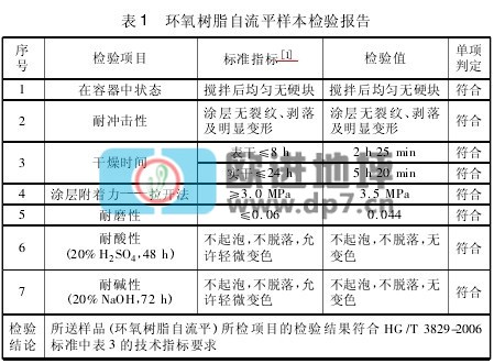 武鋼 CSP 廠安全標(biāo)準(zhǔn)化項(xiàng)目于2010 年12 月24 日開始施工,2011 年 4 月 20 日施工完畢,4 月 27 日通過國(guó)家安全標(biāo)準(zhǔn)化驗(yàn)收,6 月出現(xiàn)環(huán)氧自流平地坪起皮現(xiàn)象,7 月份磨輥件間卷取區(qū)出現(xiàn)大量起皮現(xiàn)象,7 月中旬設(shè)備組、生產(chǎn)組、安環(huán)組共同組織油漆供應(yīng)商、施工單位進(jìn)行分析。施工單位提出是油漆問題和天氣原因?qū)е?,油漆供?yīng)商提交了由國(guó)家材料檢測(cè)中心出具的油漆檢驗(yàn)報(bào)告( 檢驗(yàn)報(bào)告見表 1) ,并提出做油漆現(xiàn)場(chǎng)鑒定。