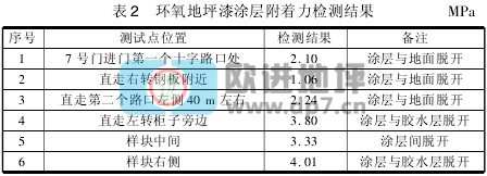 由于環(huán)氧地坪漆已出現(xiàn)大量起皮、破裂,影響使用,因此需重新施工。針對(duì)已出現(xiàn)的問題,再次施工時(shí)對(duì)施工過程做出了詳細(xì)的要求。