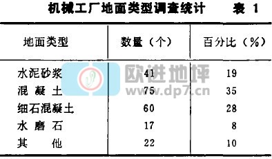 凡以水泥作膠結料的水泥砂漿、混凝土、水磨石等地面面層,習慣上稱水泥類地面。水泥類地面具有強度高、剛性好、取材容易、造價適中、施工及維修方便等優(yōu)點,它在我國工業(yè)建設中得到最廣泛的應用。據(jù)機械工業(yè)部對215個機械工廠車間、工段的調查統(tǒng)計,水泥類地面約占90%,詳見表1。調查表明,除水磨石面層外,各種水泥類面層存在不同程度的起灰、起砂現(xiàn)象,不僅有礙人體衛(wèi)生,而且影響儀器設備的使用壽命,影響零件的加工精度或產(chǎn)品質量,水泥地面的上述弊端,使其應用范圍受到限制。如何揚其所長,避其所短,保持水泥類地面廣泛而經(jīng)濟的實用價值,實屬亞待解決的課題?!豆I(yè)建筑地面設計規(guī)范》修訂組,在調查研究的基礎上,已將各地防止水泥地面起灰的有效措施和幾種新型的水泥地面類型列人規(guī)范,現(xiàn)分別介紹如后。
