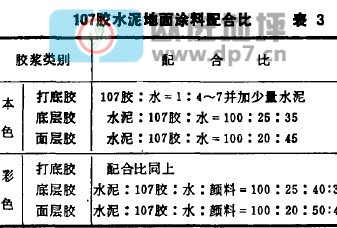 107膠水泥地面涂料分本色和彩色兩種,其配合比詳見表3。