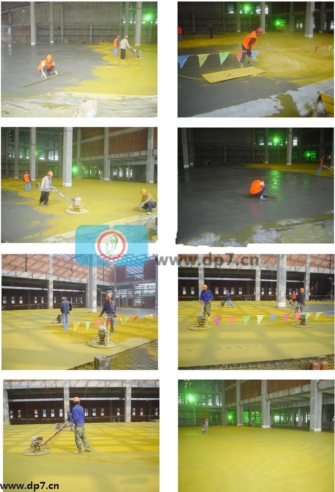 混凝土用水泥基耐磨材料(金剛砂加一定比例的硬化劑拌和而成)。耐磨材料用量4~6Kg/m2(推薦使用5 Kg/m2)。