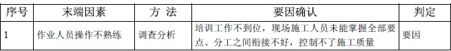 經(jīng)過對各種因素的調(diào)查分析,確定5 條要因,討論結(jié)果如下:
