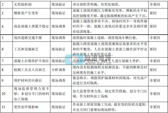分別統(tǒng)計出:地坪的平整度和水平度、外觀質(zhì)量、表面的完整度是影響質(zhì)量的關(guān)鍵因素;