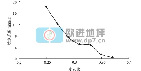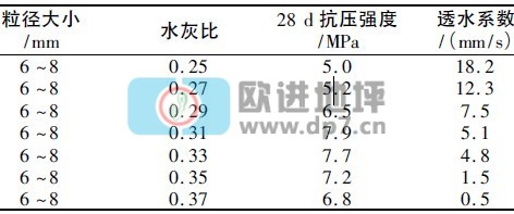 Table 2 The influence of different water-cement ratio to compression strength and permeable coefficient