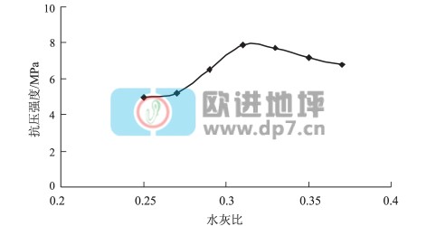 Fig. 1 The influence curve of water-cement ratio to compressive strength