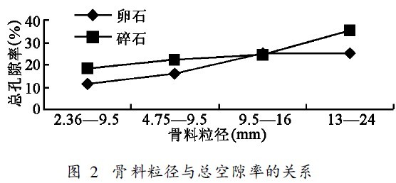 水泥: 陜西省漢中市漢江建材有限公司生產的32. 5級普通硅酸鹽水泥; 骨料: 陜西省漢中市天臺山碎石、漢江卵石, 骨粒徑2. 36~ 9. 5mm、4. 75~ 9. 5 mm、9. 5~ 16 mm、13~ 24 mm 4種; 拌和及養(yǎng)護用水: 飲用水。