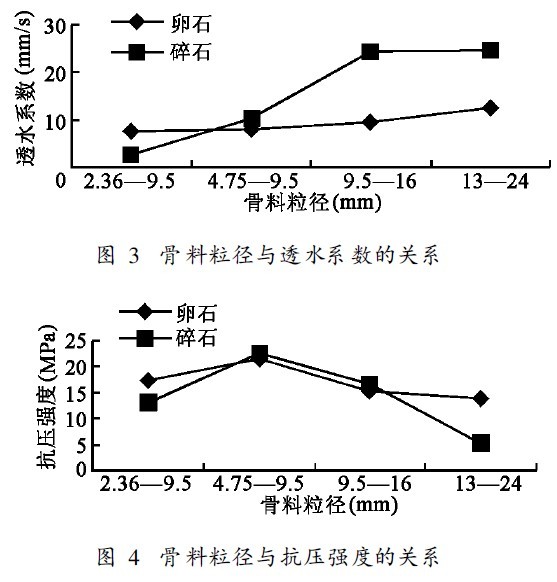 透水系數反映透水混凝土的透水性能, 強度的大小反映混凝土的力學指標, 透水系數和抗壓強度作為透水混凝土的兩個重要性能指標, 其數值大小關系到透水混凝土的使用效果及應用程度, 對透水混凝土透水系數和抗壓強度的研究已成為一項重要的研究內容。本文主要研究了骨料品種、骨料粒徑對透水混凝土主要性能的影響, 為配置高性能透水混凝土提供依據。